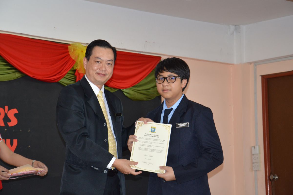 In March each year, after three months of probation all elected or appointed student leaders of the school are officially installed and sworn in to that position of responsibility. Student leaders include school prefects, student council leaders and the shadow government, class leaders and assistants, presidents of clubs, games and uniform bodies and librarians. Students usually hold their positions for one academic year and are given certificates of merit if they carry out their duties diligently and with dedication.